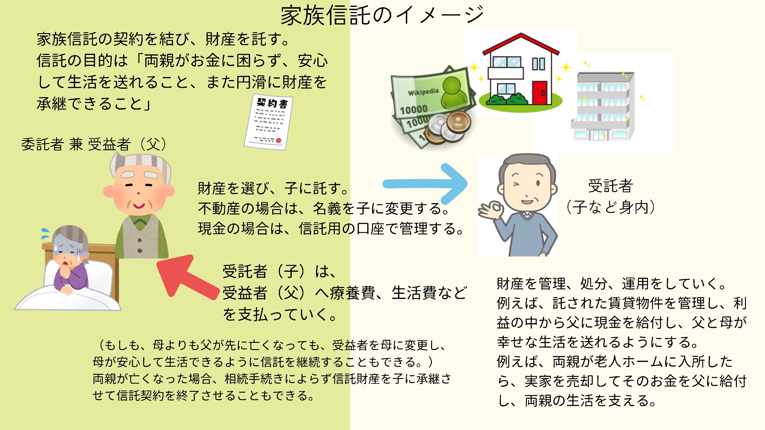このページでいう信託は、銀行などが行う商事信託ではなく、家族や親族間でする信託ということになります。