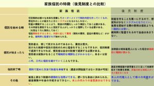どれも信託法という法律に基づいて行う財産管理等のしくみのことです。